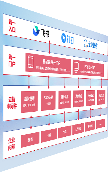 对协作平台提供支持服务,,,支持企业应用与协作平台对接,,,,包含组织同步、、、消息集成、、待办集成等。。。。支持目前主流的协作平台:钉钉、、、、企微和飞书。。